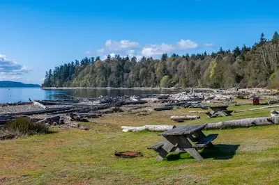 We set out on a beautiful summer morning for our overnight adventure from Leschi with a chart, some food, anchor, a tarp to put over the boom to keep us dry from the dew at night, sleeping bags, mooring lines, bumpers, and a kerosene stove. Our destination was Blake Island. The whole island is a Washington State Park and has a small bay, and in those days, a small dock. It is about 10 nautical miles once you get out of the locks.