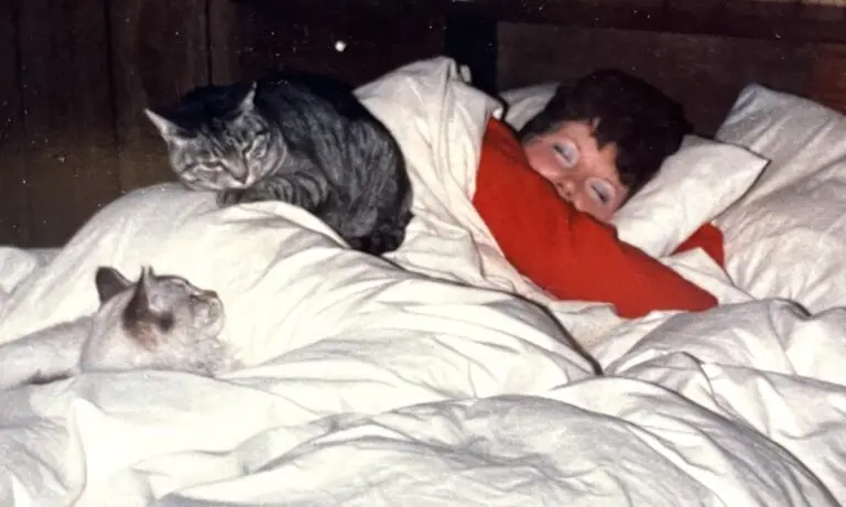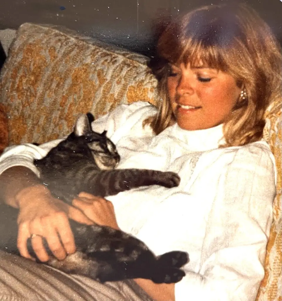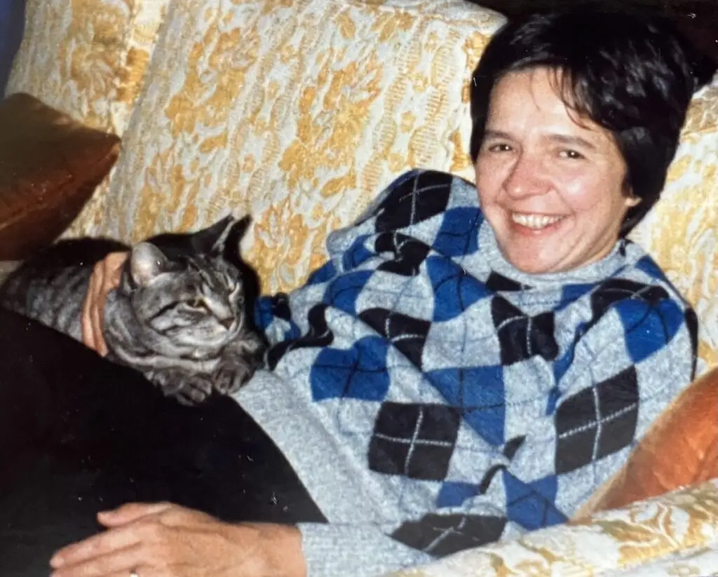 One day Tim brought home another tabby kitten, so we named her Agnes, too. She had been left on a mortuary doorstep in a box with other kittens, and was brought to the school where Tim taught. She proved to be smart, able to open doors and sometimes cranky as well as bossy but usually a loving cat! A real snuggler! Her name fit her perfectly!