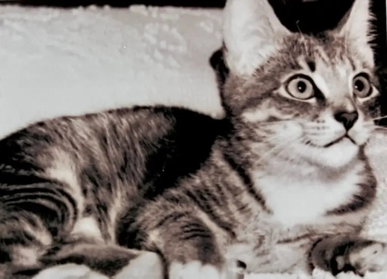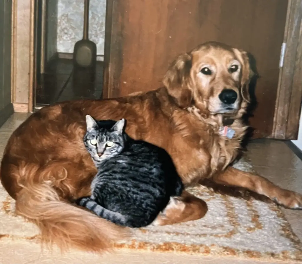 After our first cat “Sam” disappeared, we adopted a lovely little tabby who became great friends with our first Labrador, Casey. We named her Agnes, (which didn’t fit her charming personality very well!) Sadly, she was struck by a car on our busy street, and we began to question ourselves as cat owners!