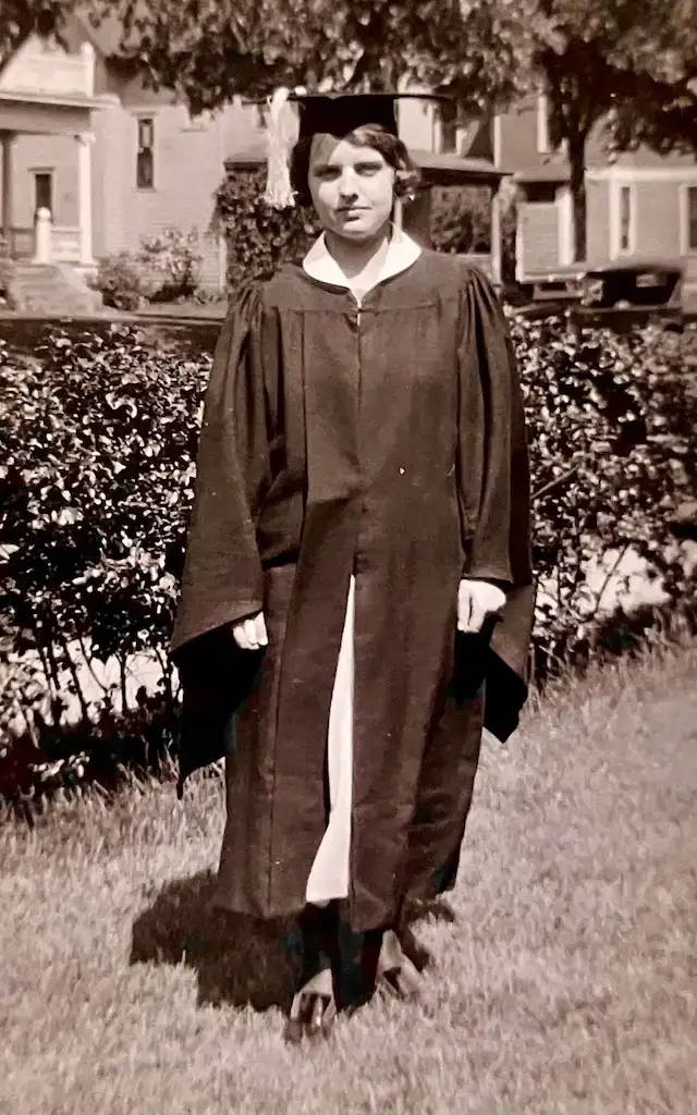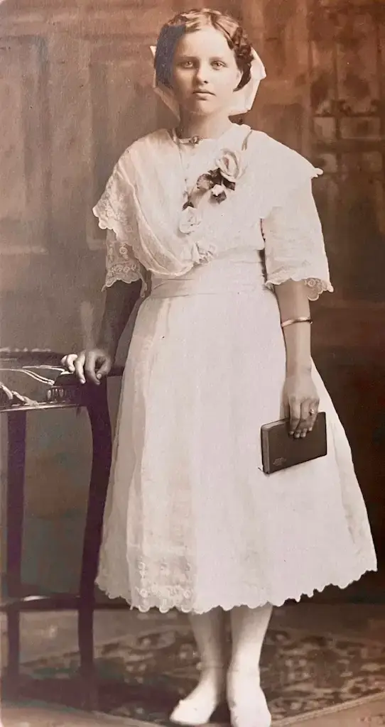 Born on December 28, 1901 in southern Minnesota, we meet her as a child with her mother, Martha, standing behind her. Is Ida already reading? Not likely but I wouldn’t be surprised! She will be an avid reader all her life. Homer’s Iliad, Shakespeare’s Hamlet and Goethe’s Faust are in her future!  First, she will learn to be a farm girl with eggs to gather, ducklings to mother, a vegetable garden to tend and meals to prepare over a wood stove.