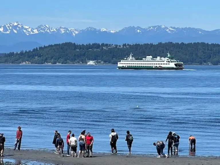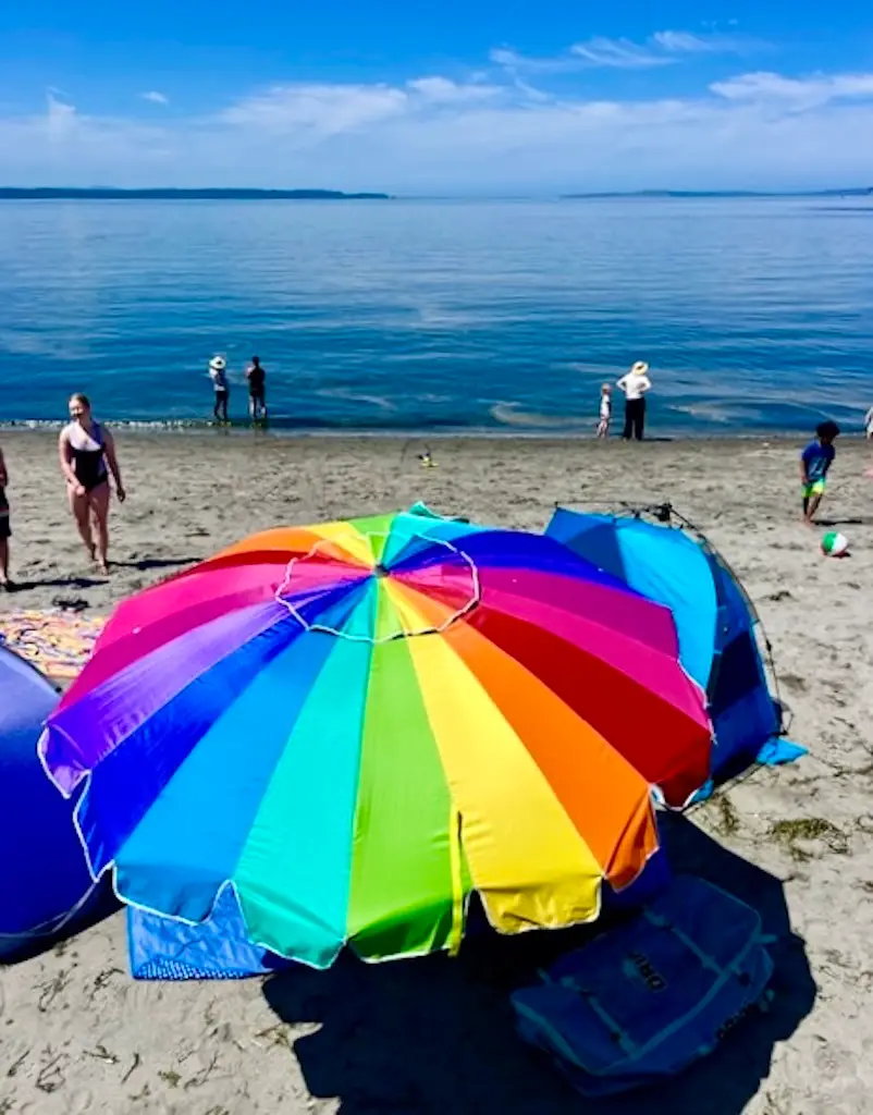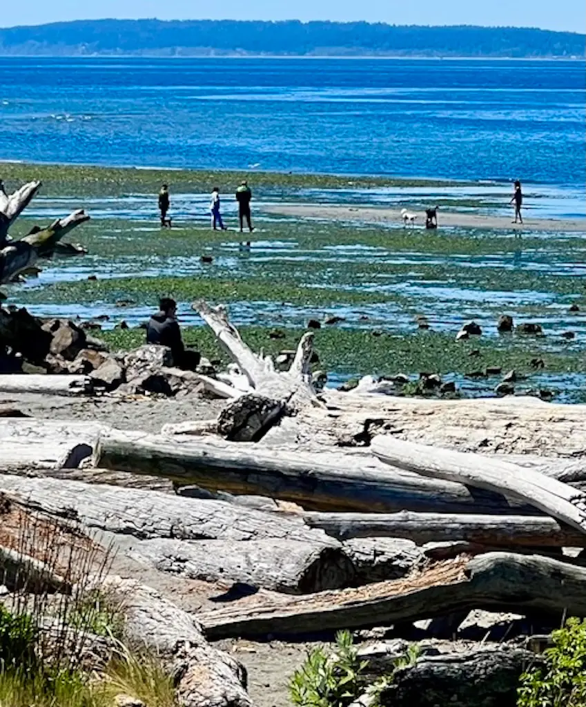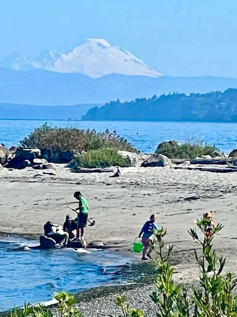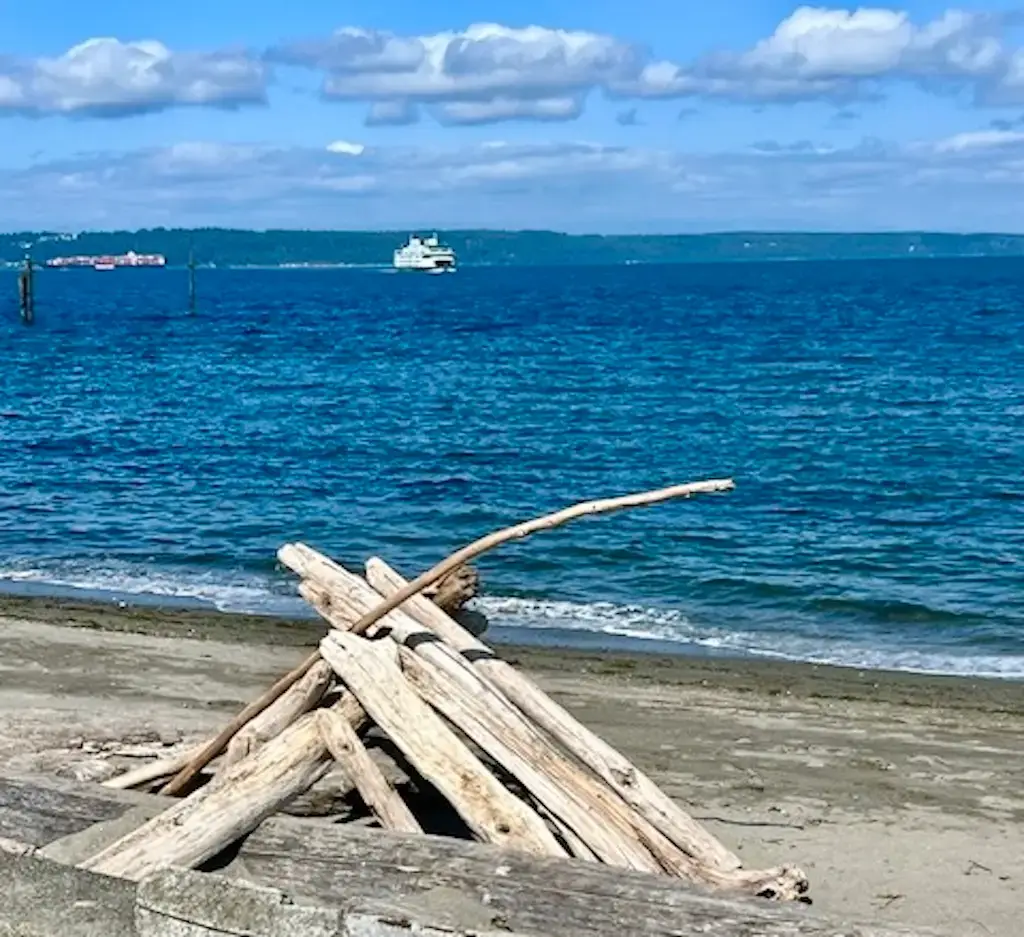 Tim & I are delighted to present to you another post featuring Lee Lageschulte’s wonderful photography.The NESTER published her first post over three years ago about a road trip and within 6 months the subjects of her photographs included gardens, festivals, parks and walks in Edmonds where she lives. Of course, Lee snapped photos of Edmonds Beach.What’s fun about beaches is that they are always changing!With each season, storm, and tide, the beach can be a brand new experience. Even the people change from year to year.This year’s children with sand, shovels, and pails are next year’s adolescents. This year’s parents are next year grandparents. Last year’s driftwood is rearranged and offers new possibilities for sculptures.And so, Lee and her husband Roger offer you visual treats of Edmonds beach in 2025.