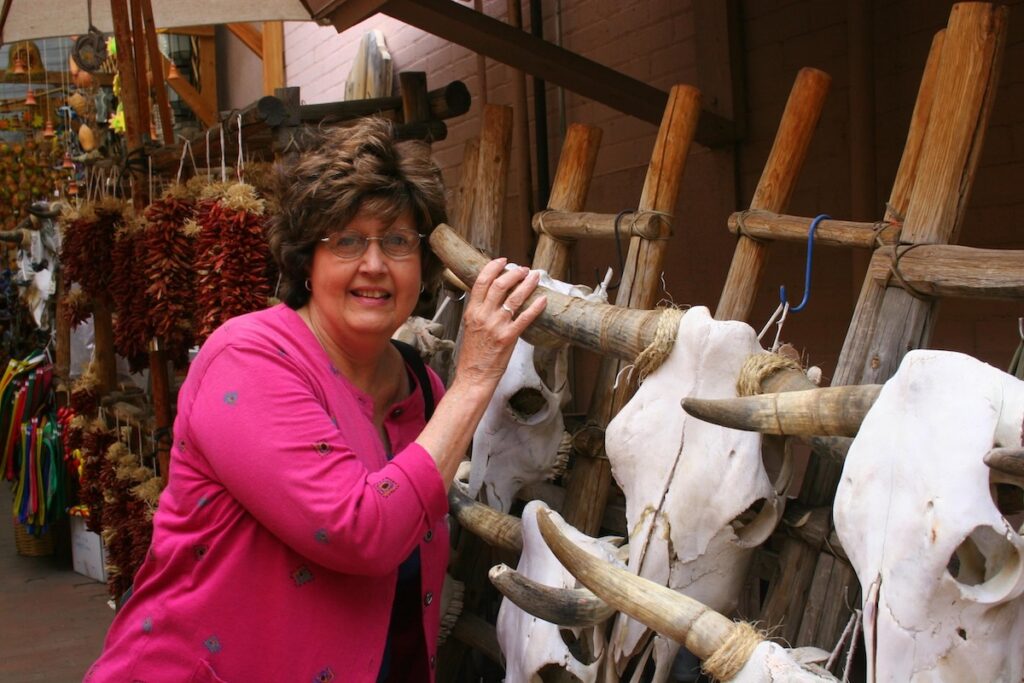 Since we had been to the Alamo, we left the Gulf Coast and Texas and continued our odyssey on to New Mexico and Arizona. The goals were Santa Fe, The Grand Canyon and Sedona. Laura had suggested taking the less-traveled route to Santa Fe on the east slope of the mountains and that was an unexpected pleasure. Narrow road leading to a small town filled with writers, artists and a gathering of motor cyclers too numerous to count. And, among the friendliest people we met.